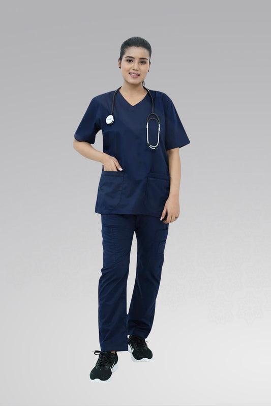 Classic Curve™ Scrub Suit – Timeless Navy Blue Grace